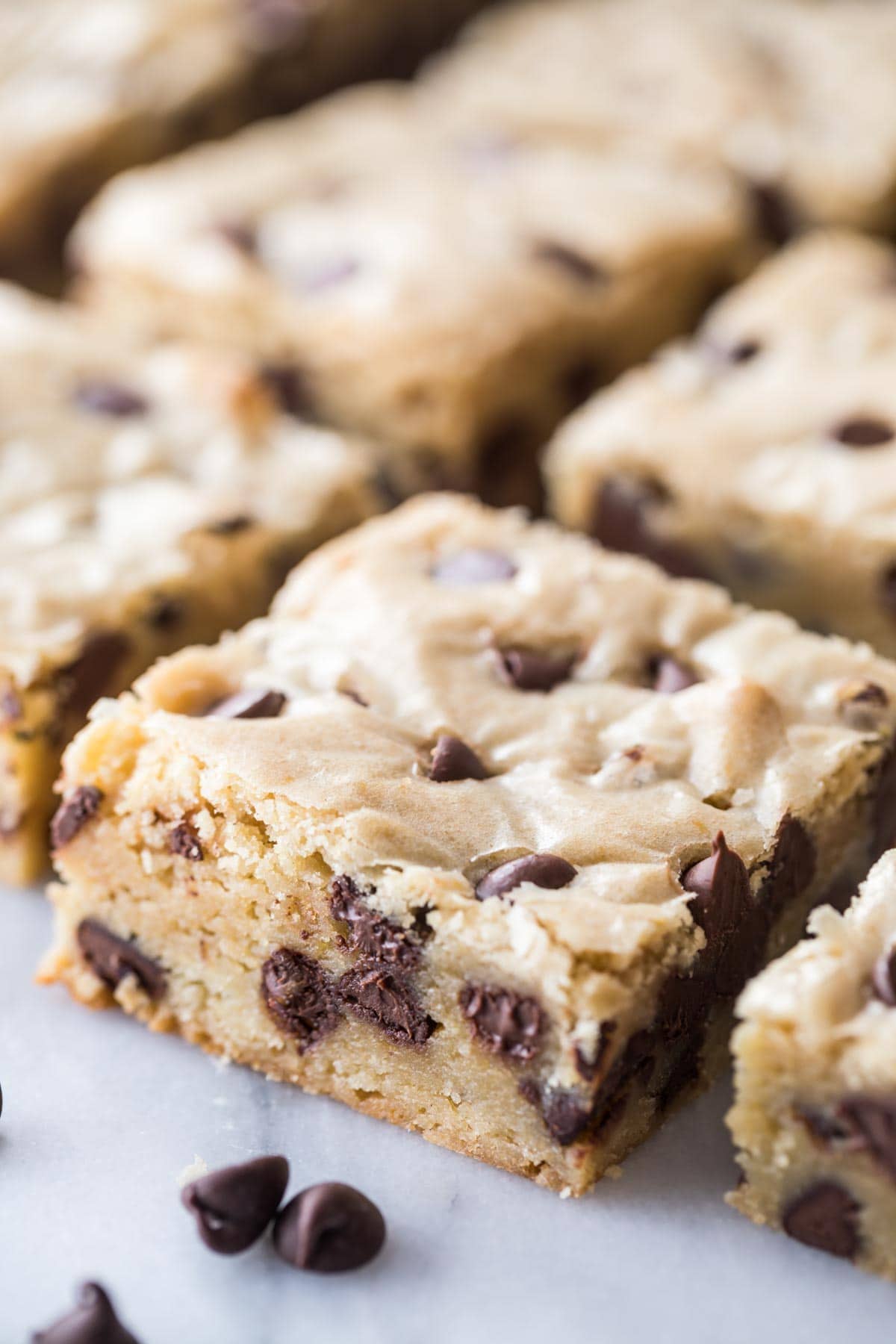 With no mixer, no chilling, and no scooping, these chocolate chip cookie bars are your perfect lazy-day dessert. They’re just as soft, chewy, buttery, and delicious as their cookie counterparts, but they take a fraction of the time to prepare.
