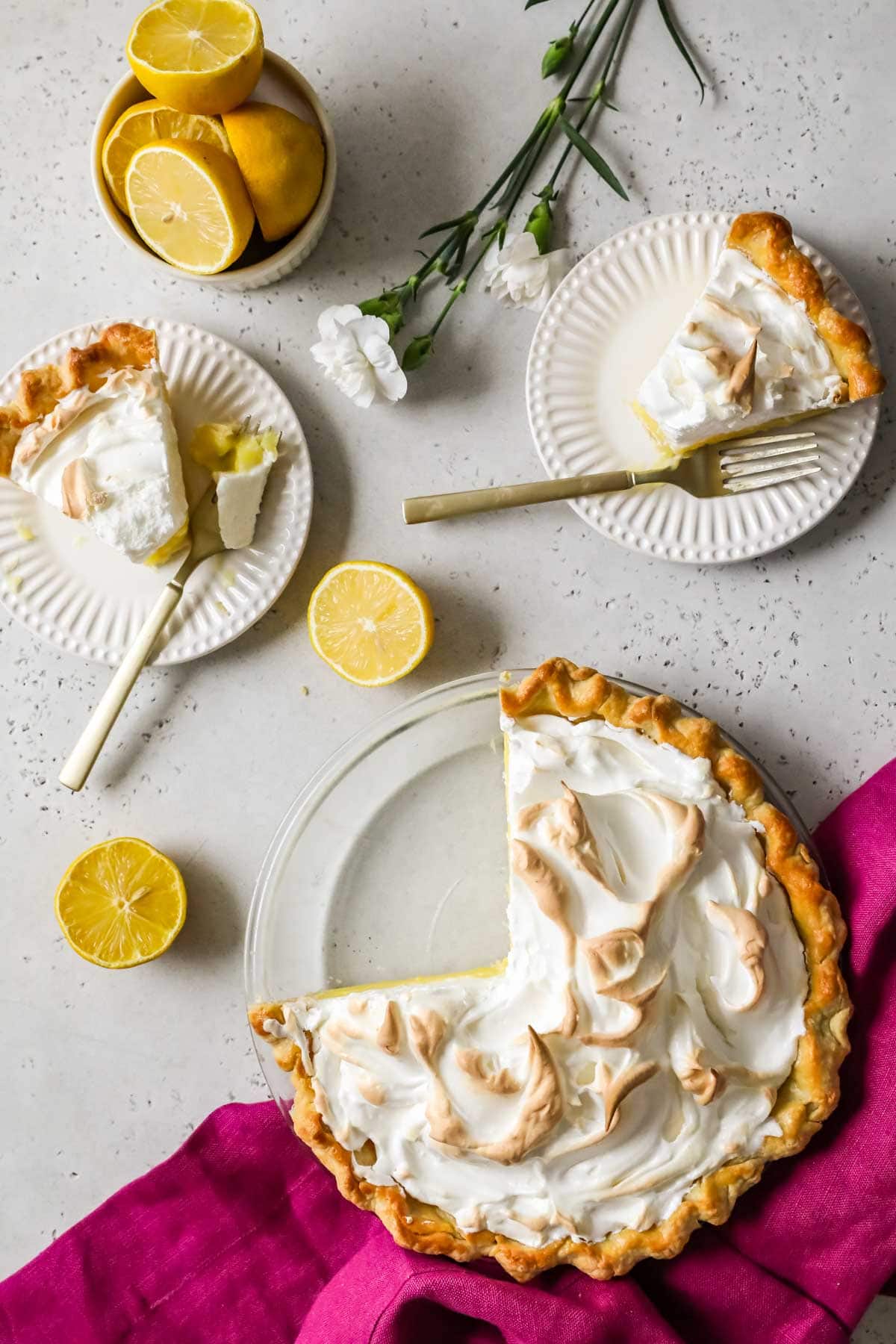 - Plenty of meringue that billows beautifully over the pie layer. I designed my recipe to have a generous amount of meringue for making those gorgeous peaks and whorls over the pie, because what’s a lemon meringue pie without them?