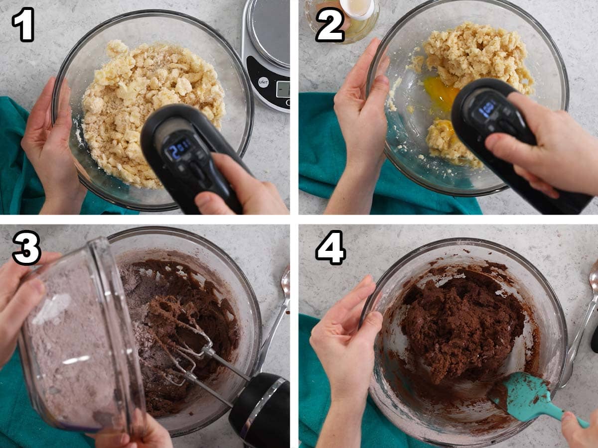 - In a large mixing bowl, combine butter and sugar and beat with an electric mixer until light and fluffy.1 cup (226 g) unsalted butter, 1 ¼ cups (250 g) granulated sugar, ½ cup (100 g) light brown sugar